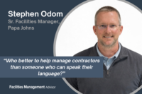 Stephen Odom, a senior facilities manager at Papa Johns, believes having a strong background in skilled trades can set you up for success in facilities management—especially when it comes to working under “extreme” pressure. Odom’s own background includes about 20 years in the commercial mechanical industry, with previous roles such as regional HVAC manager, national […]